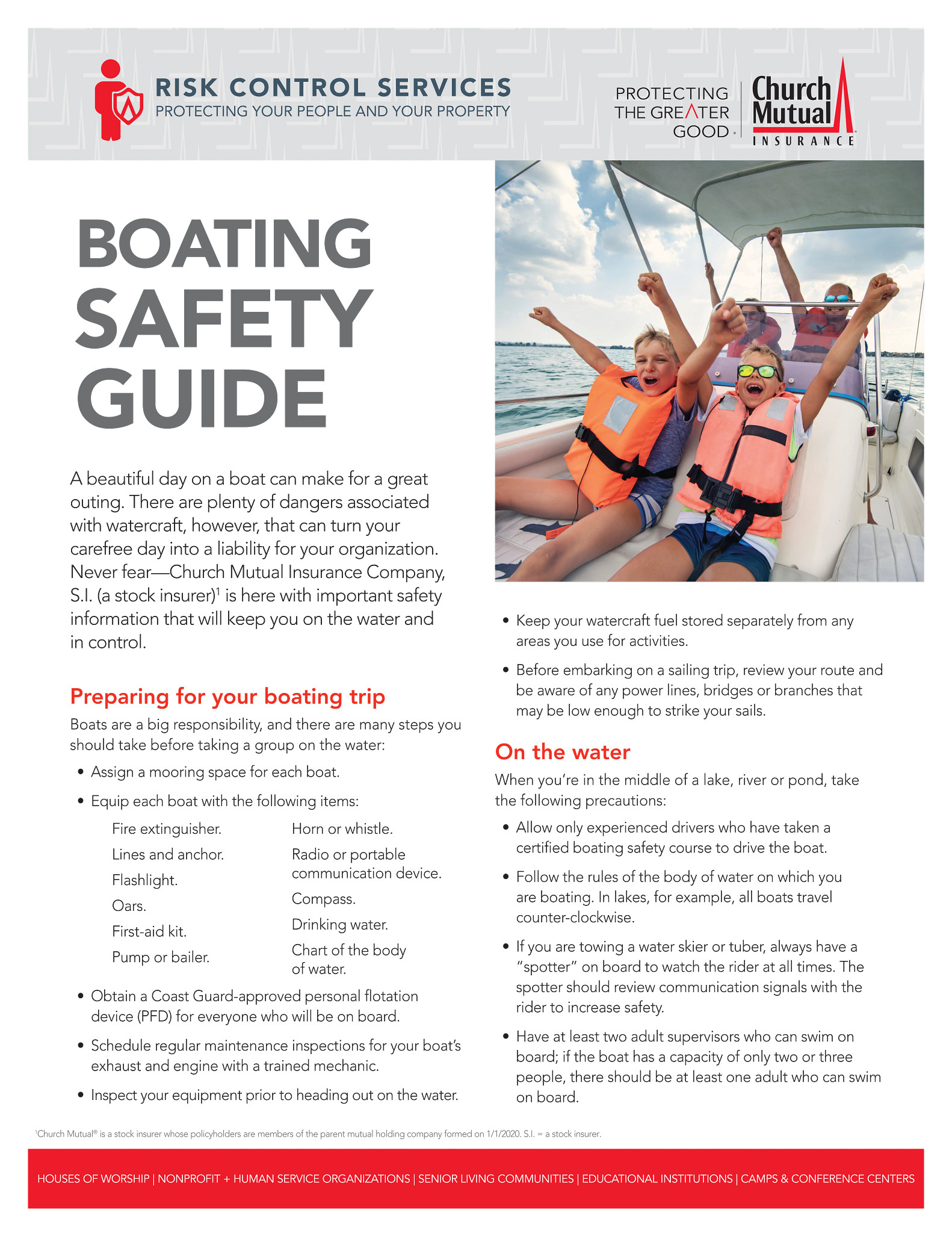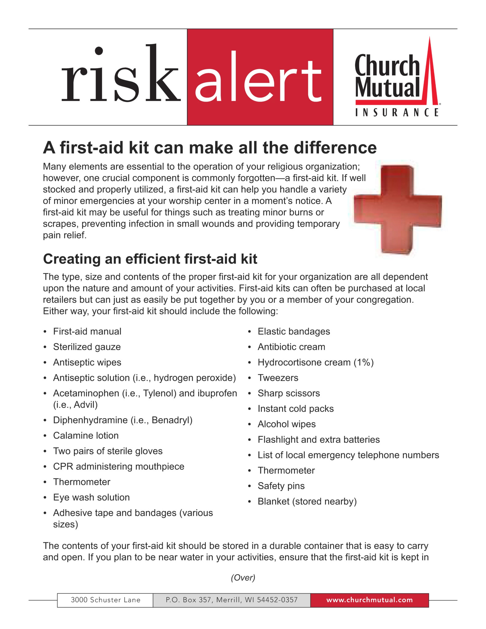 At Church Mutual, our risk management specialists work with customers to help you minimize your risk of needing to submit a claim. We have developed “10 Essentials” lists for a wide variety of topics, including injury prevention strategies. The 10 Essentials for Preventing Injury and Illness are as follows:
